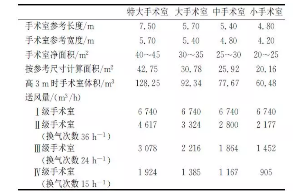 1、根據《醫院潔凈手術部建設標準》計算設計送風量(見表1)
